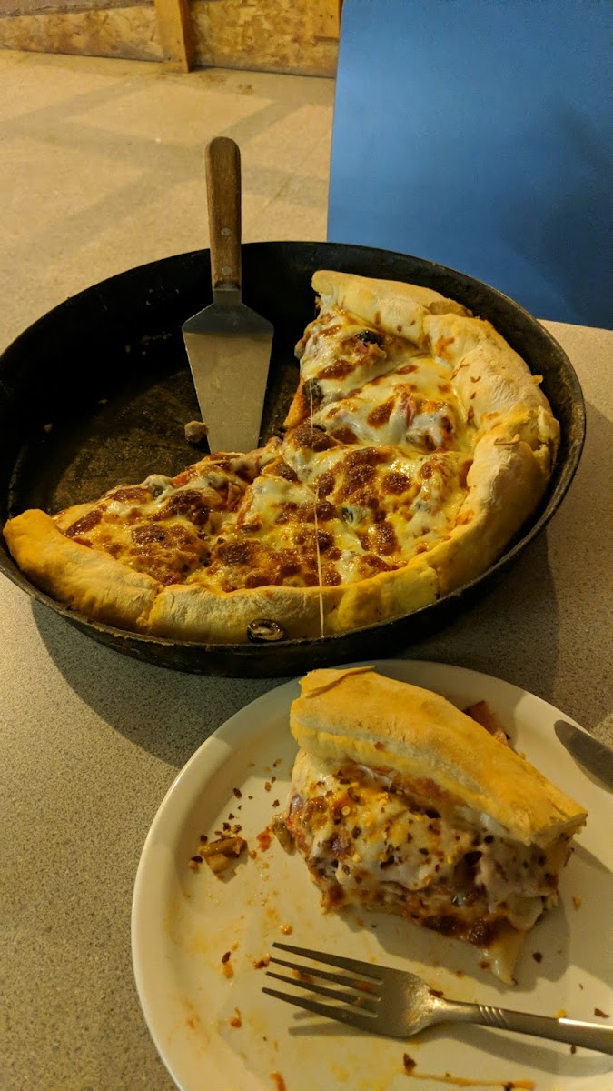 The pizza here is VERY good! The staff is nice! This and the BBQ place are the best places in Walden hands down! They also sell books and some other things.